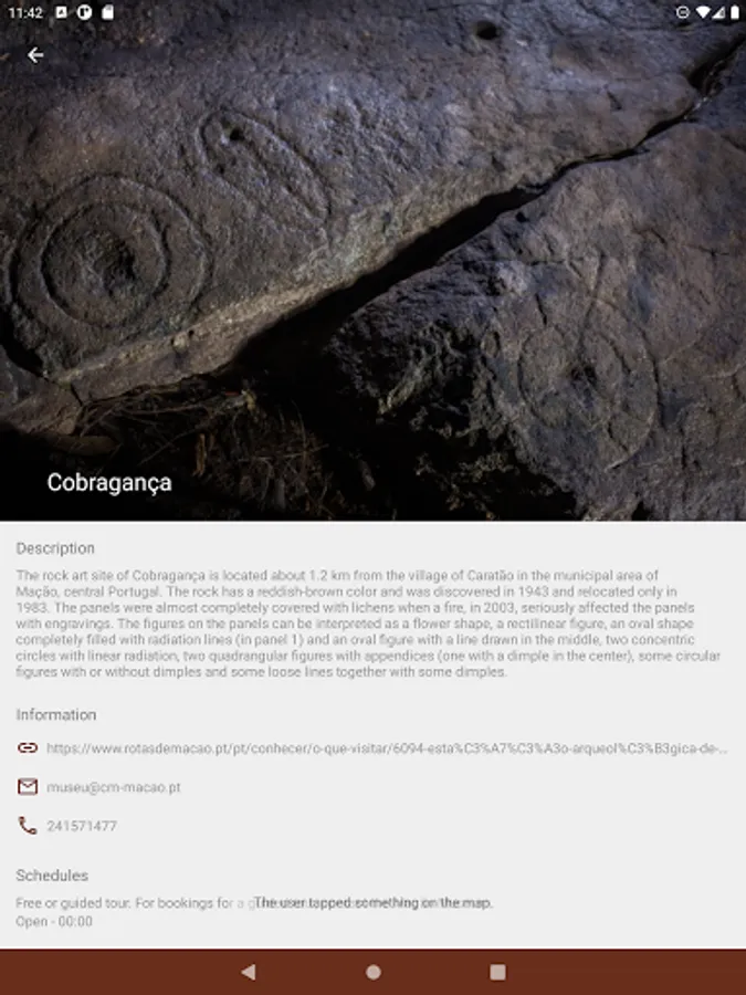 The "Museum of Mação" app is a spectacular trip into the past of Mação territory. Going through several temporal episodes, it is possible to observe how a horse was recorded in the Ocreza in the Paleolithic, 20,000 years ago, to experience the funerary rituals in a dolmen 15,000 years later, what people were doing at the beginning of the 20th century in the most busy square of Mação village, where the festivals and pilgrimages took place in the 60's and how fishing was done, until recently, in the Tagus River, in Ortiga fishing grounds.