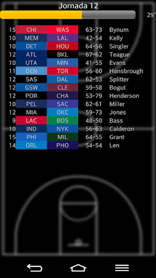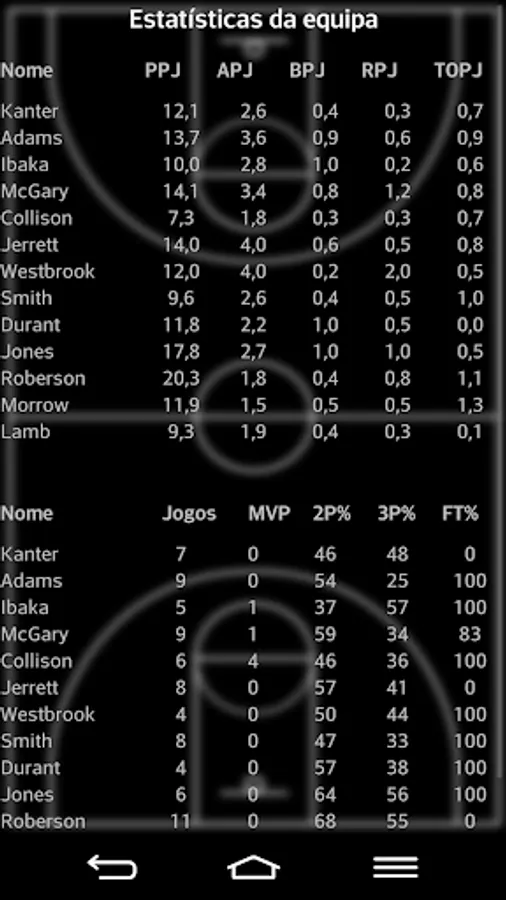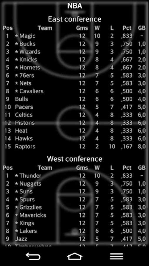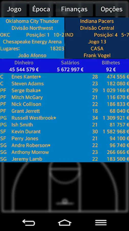 Basketball 50-40-90 is a quick and simple game in which the player plays the role of manager of a basketball team, at all based on the main US basketball league. The teams are divided into two conferences, each of three divisions. At the end of the season, the top eight teams from each conference compete for a playoff. The 50-40-90 is the most difficult to achieve statistical at a time, by a player: get 50% percent hit on 2-point baskets, 40% accuracy in 3-point baskets and 90% accuracy in bids free.