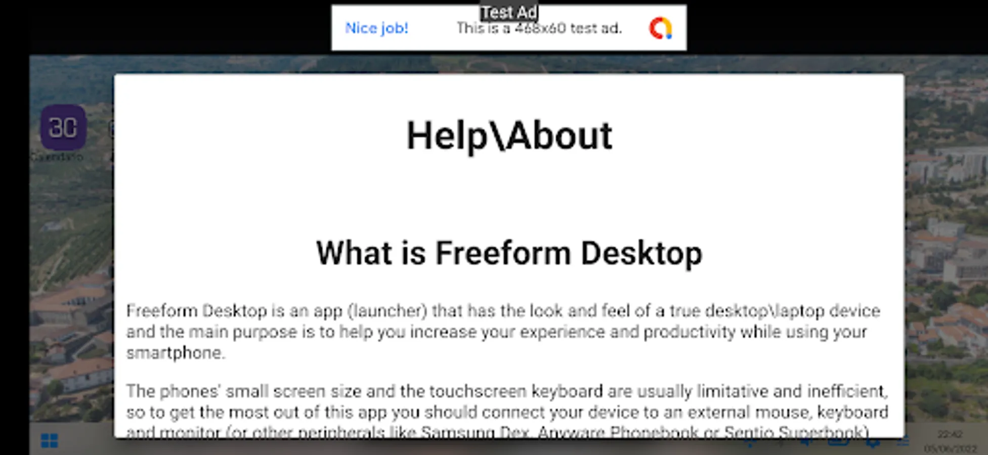 Freeform Desktop is an app (launcher) that has the look and feel of a true desktoplaptop device and the main purpose is to help you increase your experience and productivity while using your smartphone.