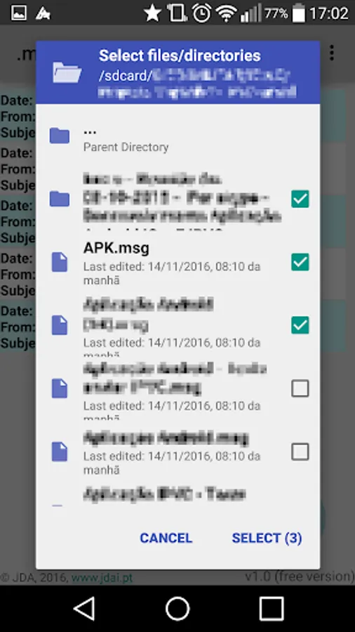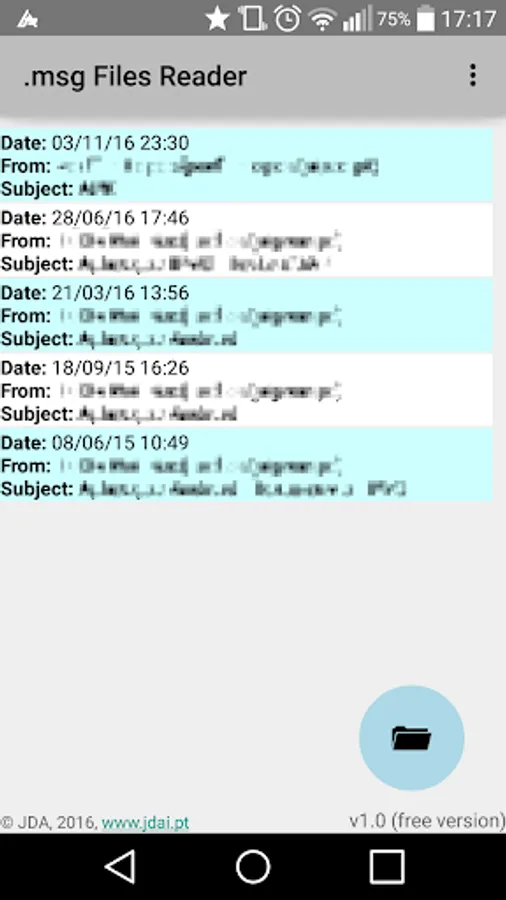 The problem that it solves is the following: when you export MS Outlook mails and move them between different kinds of media, the date they present is the file system created/modified date. Unless you import them to MS Outlook again, or to an equivalent app, there's no trivial way to re-order them again properly. This app allows you to do it easily in an Android environment: simply select files and/or folders where you have those .msg files stored and they will appear ordered by their sent/received date.