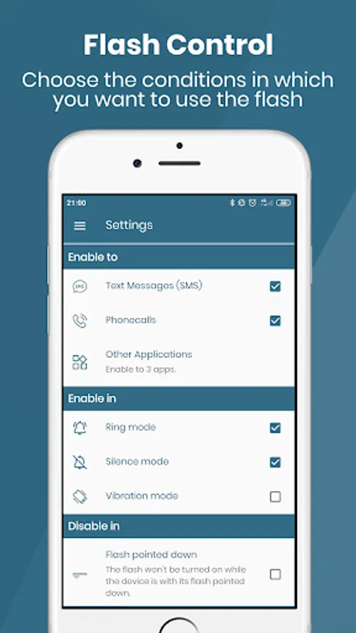 Use the flash of your phone as a new method of notification: quiet, elegant, attractive and appealing.