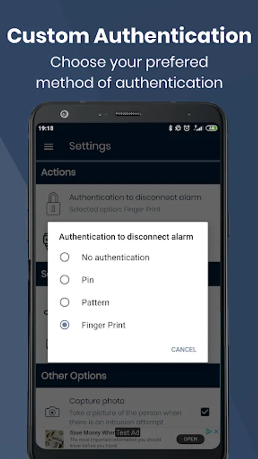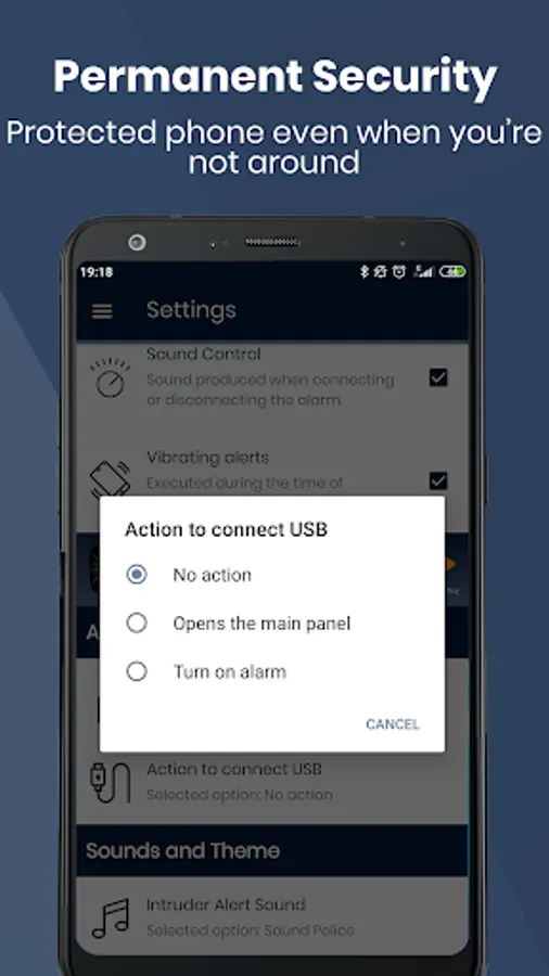 An audible alarm sounds to detect that someone is trying to invade your cell phone, preaching a fright and pushing the invader off your cell phone.