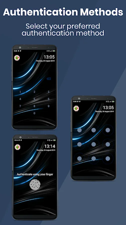 - Choose lock type (Pin or Unlock pattern, or without lock screen)