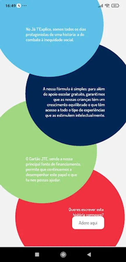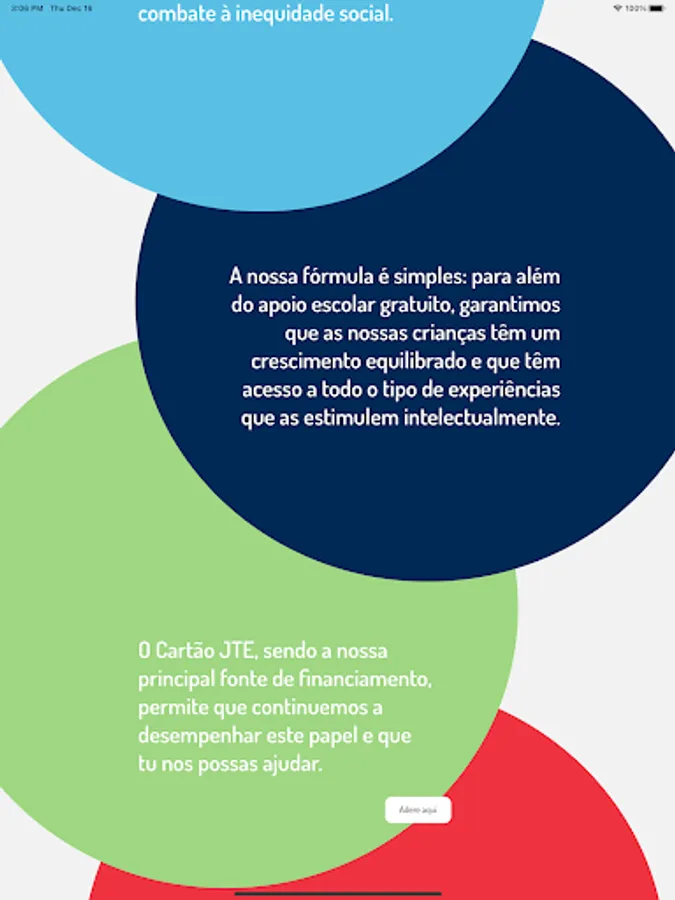 The JTE Card is the main source of funding for Já T’Explico, a non-profit organization that supports children and young people, promoting equity in access to opportunities through education. It is made up of more than 90 university students and has supported over 100 children with educational and socio-economic difficulties.