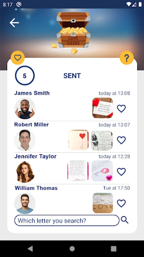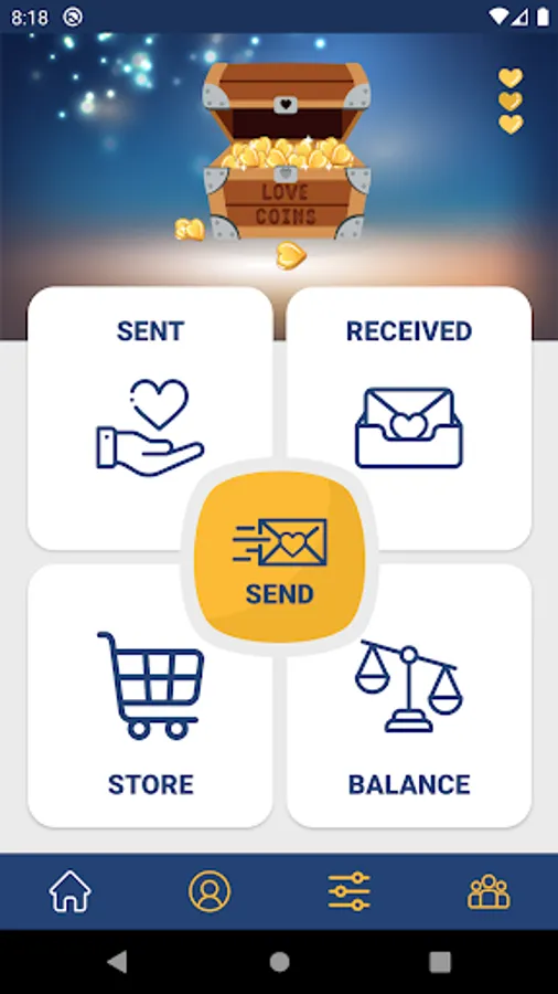 With the purpose of "not let to tomorrow what you wish to say today to someone", this App allows you to instantaneously and easily send your Love Coin to anyone everywhere in the world, expressing your pure feelings, linking the heart feelings to the brain to your hands, your Love Coins is the pure and congruent manifest of your purest feelings to the one which will enrich his/her treasure chest of Love.