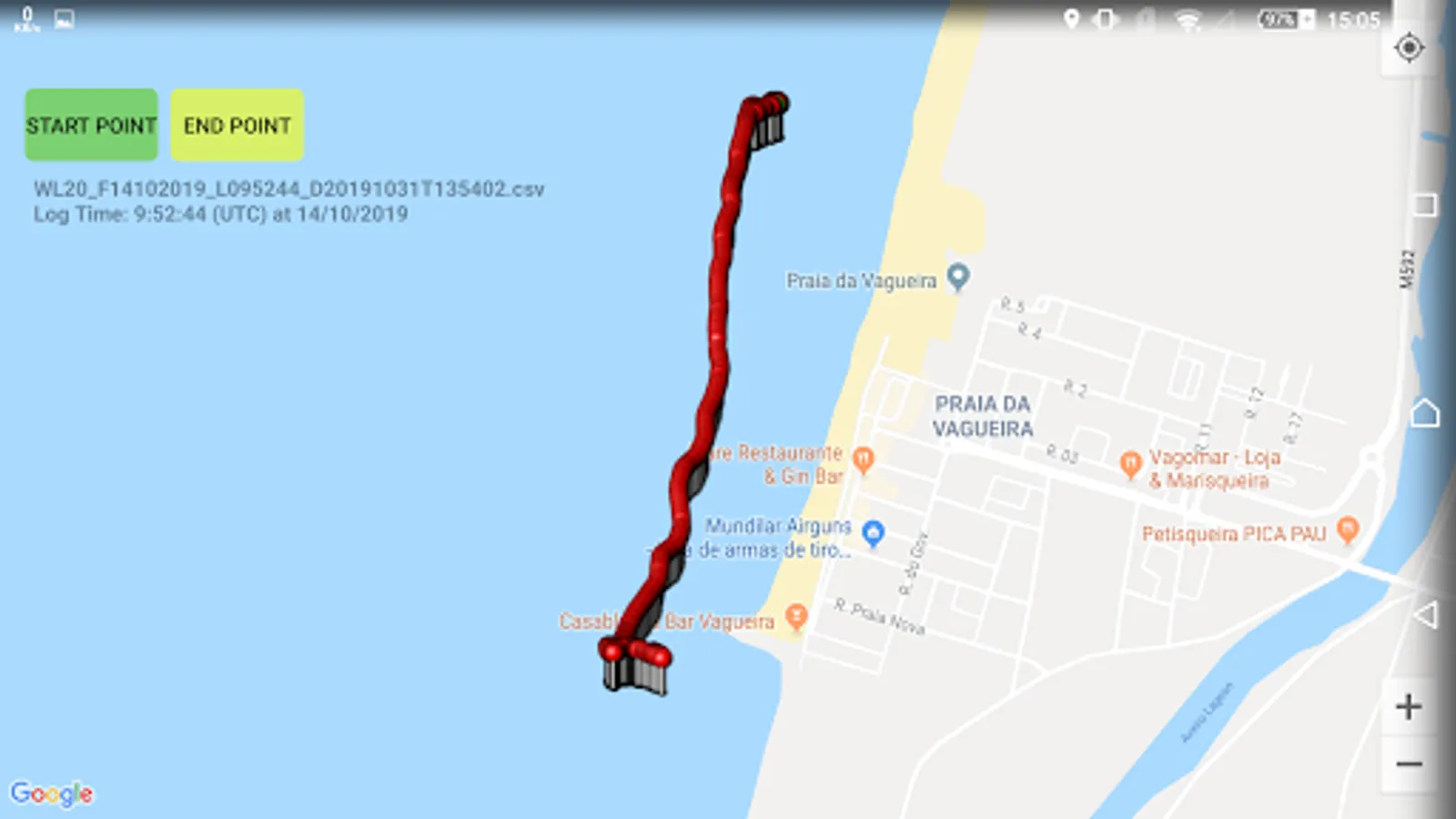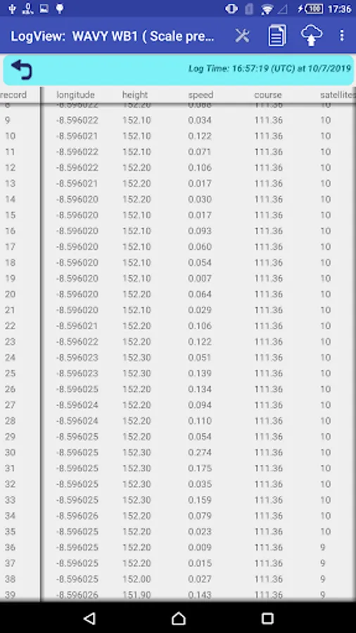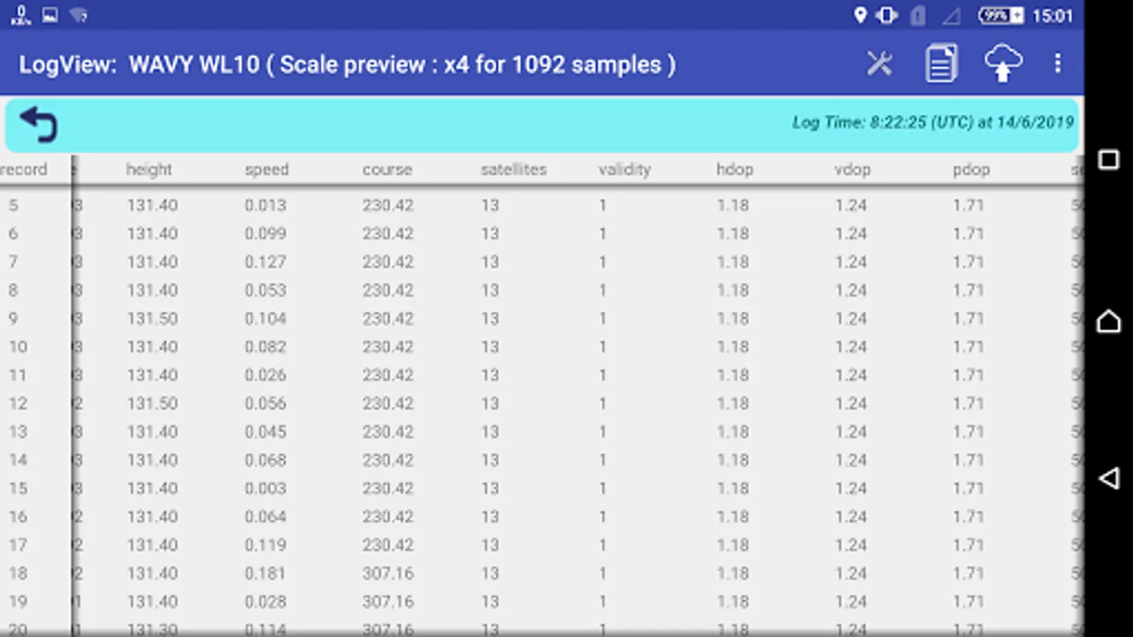 *View the downloaded WAVY logs, either in the table, graphic or map