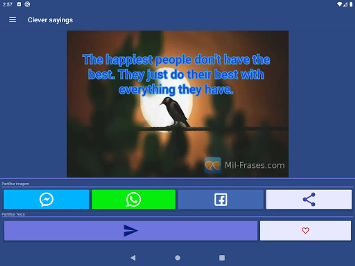 You no longer need to have more than 20 apps with a few phrases or quotes each. install this and have everything at hand. Inspirational and motivational phrases for you to share with your friends.