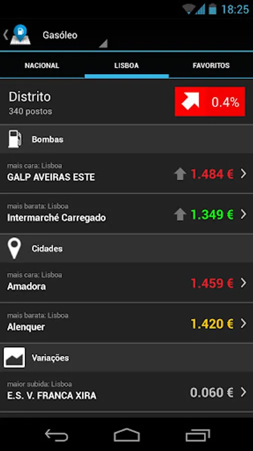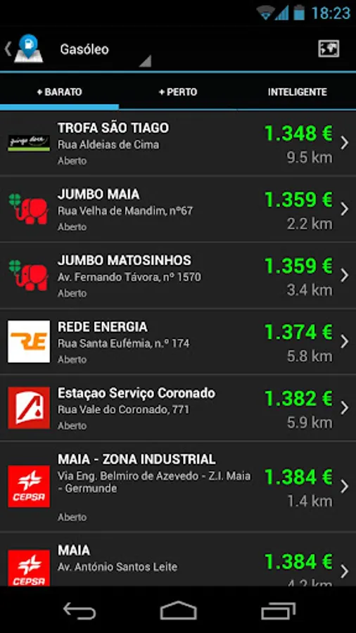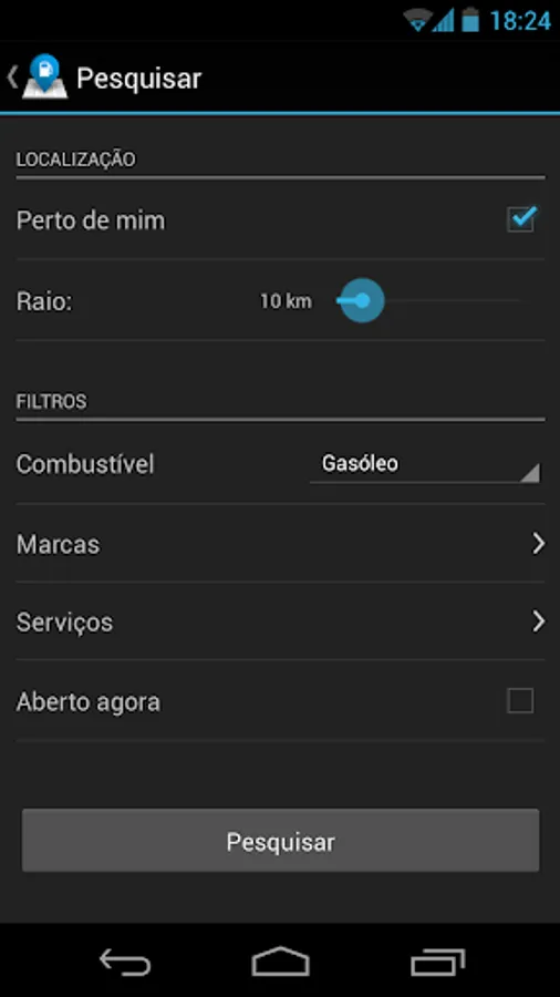 - Select by type of fuel (Petrol 95 98 Gasoline, Diesel and LPG);