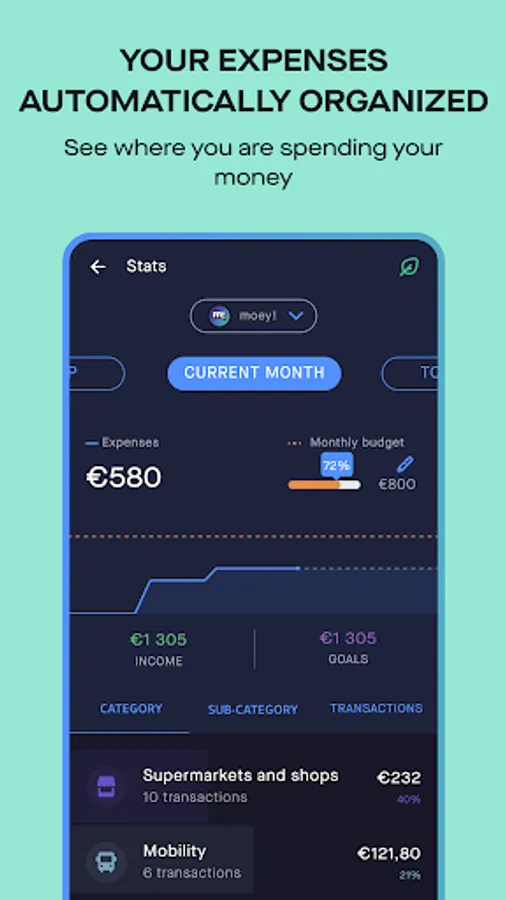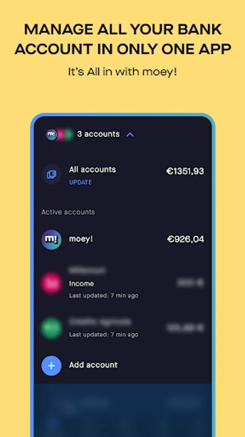 - Manage all your bank accounts: it’s All In, use the moey! app to manage bank accounts from all your banks. Make payments with the app, analyse your expenses and create saving goals for all of your accounts.