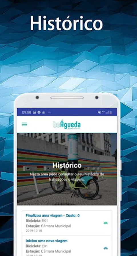 beÁgueda is a free application for Android and developed by Lightmobie with its partners that uses mobile data or Wi-Fi to manage your user account and enjoy the SBPP (Shared Public Bicycle System) of Águeda . It is ideal for those who are adept at new technologies, as instead of using the RFID card to free the bikes, make your trips, manage your balance and your history, you can do it in a convenient and practical way on your smartphone.