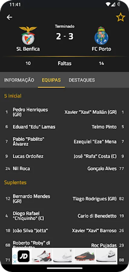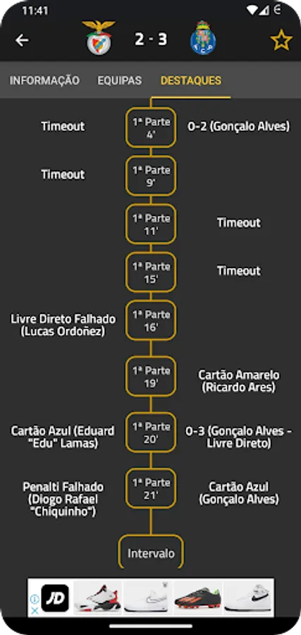 It's possible to follow the match scheduling for several days, as well as the matches result, events and teams in real time and, in some cases, to watch the match itself. You can also receive push notifications with the match events. In addition to that, you can also set your favorite teams and competitions so you can follow their details in a faster and easier way.