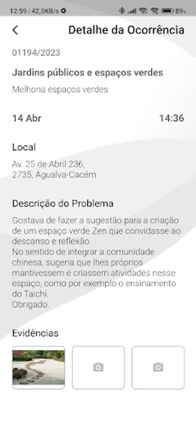 Thus, to respond to citizens more quickly and efficiently, all citizens of the parish can, through the application, register a problem found on the public road, adding comments and evidence (photos).
