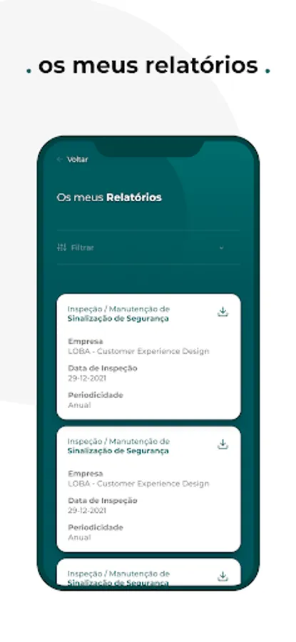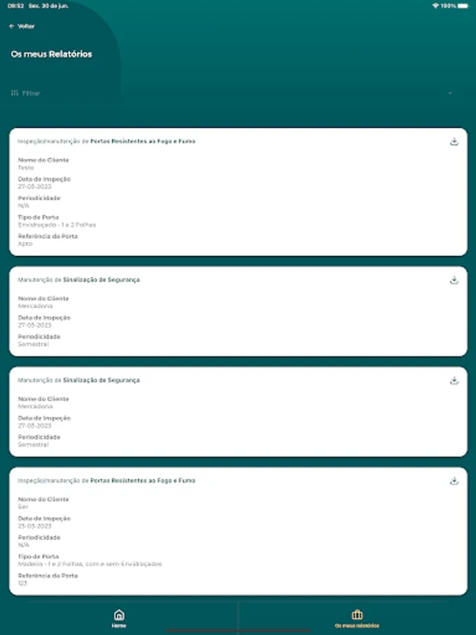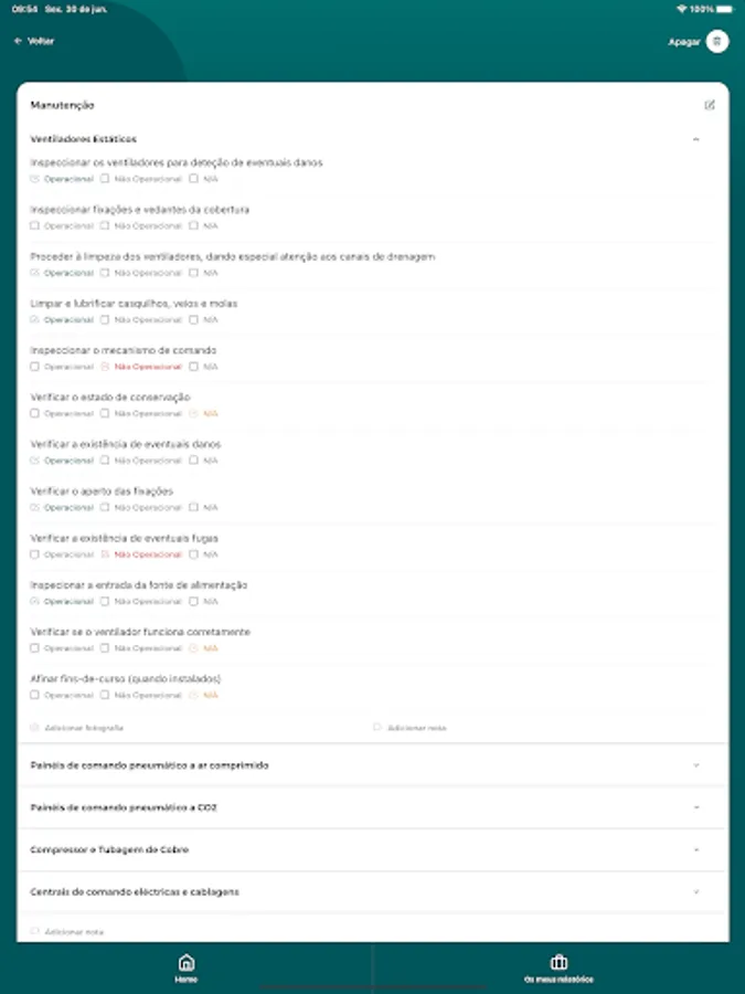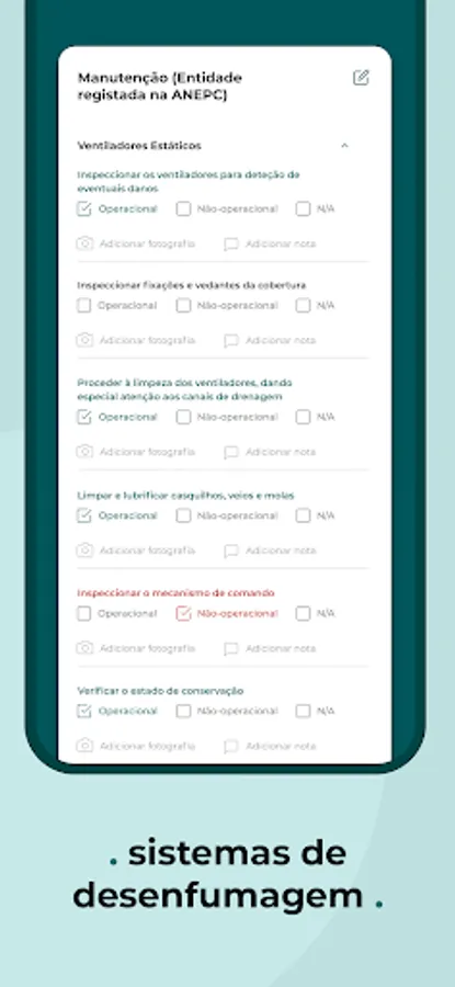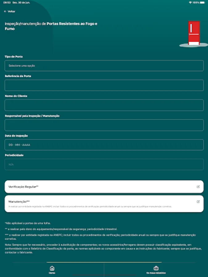 Mobile application for creating standardized maintenance reports in accordance with regulations, for use by those responsible for maintaining four types of safety equipment.