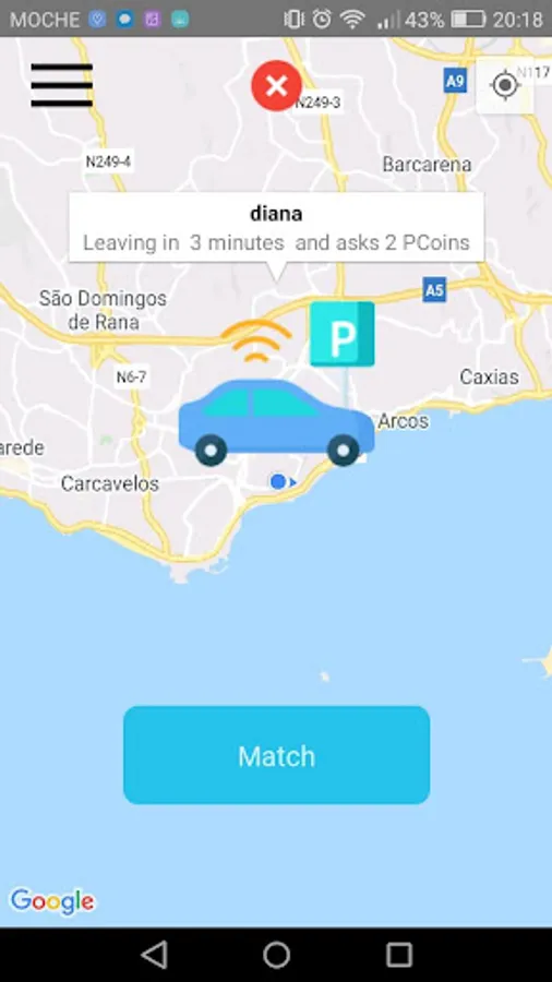 • It is necessary to update the status with the button "I am in the car" to publish the precise and final position of the parking space. Publishing a starting position of the parking space with an error greater than 150 meters will give your partner the chance to cancel the partnership or to continue, but only pay half of the agreed PCoins in the end of the match.