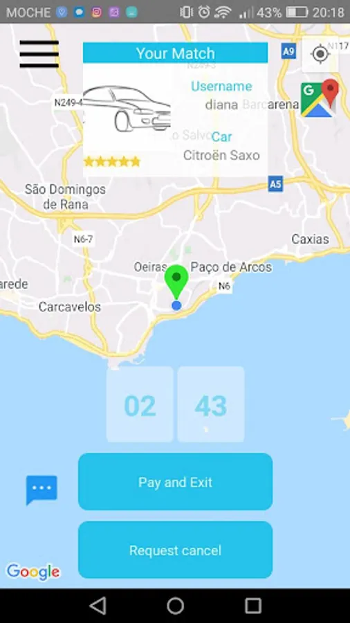 • The minimum time allowed on the timer for a match to begin is 5 minutes. This is the user who requested the parking place always has the minimum of 5 minutes to reach the location