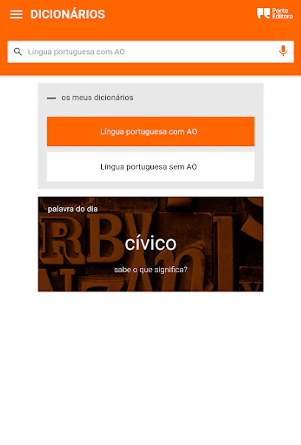 The app Dictionary of the Portuguese Language Porto Editora is essential for all those who prefer the quality of content in a mobility context.
