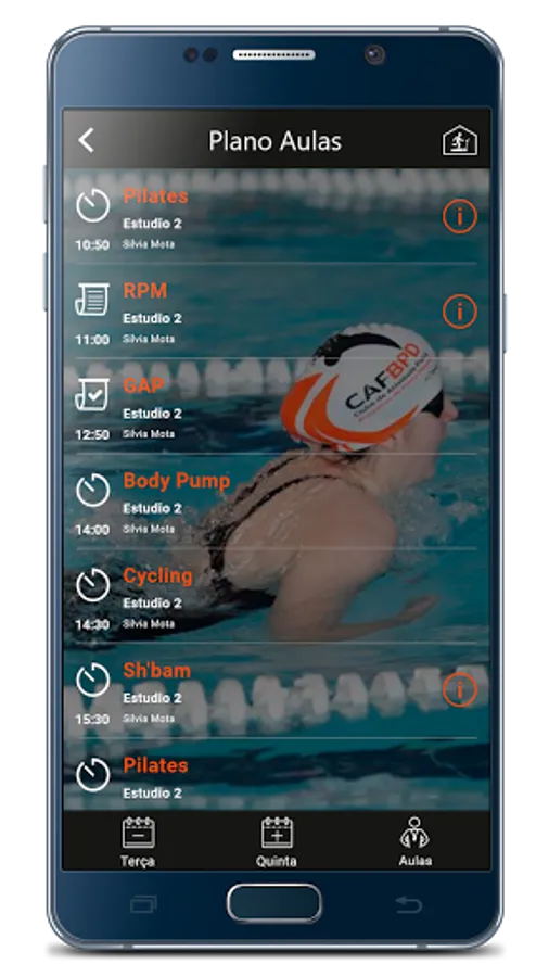 Your Lesson Map just a touch away. Here you can choose the club and consult your Class Map ... we are sure you will never miss your favorite class again !!!