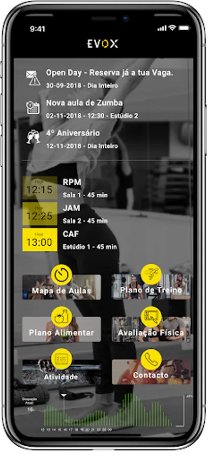 An exclusive application for EVOX gym clients, being a powerful tool to achieve the desired results.