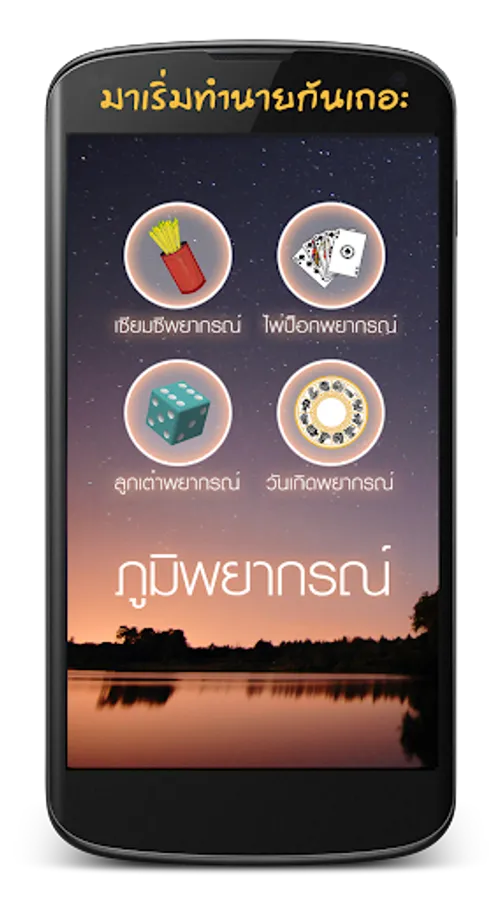 ประกอบไปด้วยศาสตร์การทำนายสุดฮิต ได้แก่ เซียมซีพยากรณ์ ไพ่ป็อกพยากรณ์ ลูกเต๋าพยากรณ์
