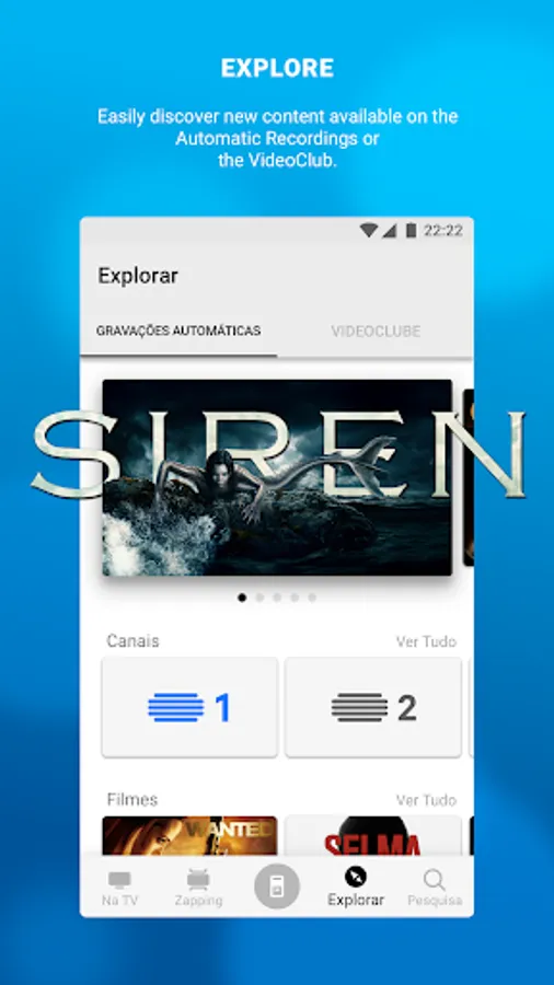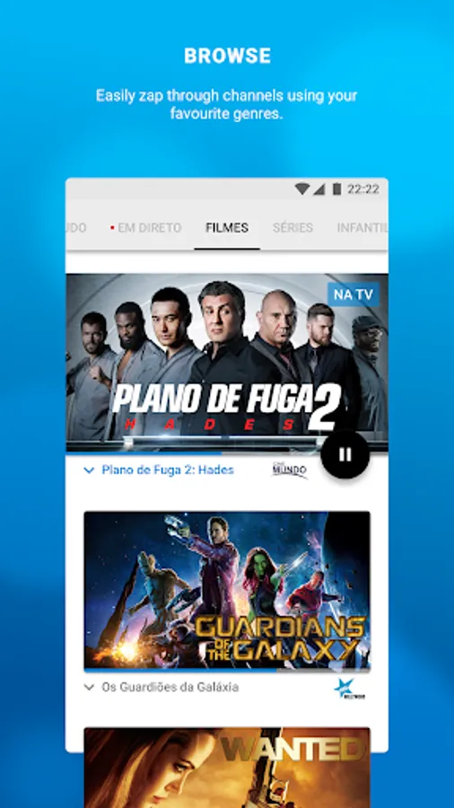 With the MEO Remote you can control your TV through the smartphone in a simple and intuitive way. Install and pair the application with the set-top box through your MEO WiFi network.