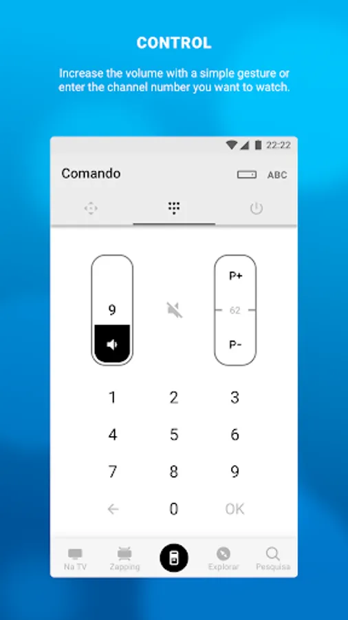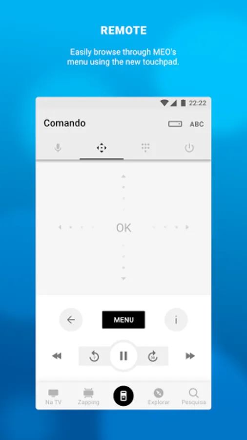 MEO's traditional physical remote features are available in this new version, such as channel zapping, increase or decrease sound, play/pause, with improved usability.