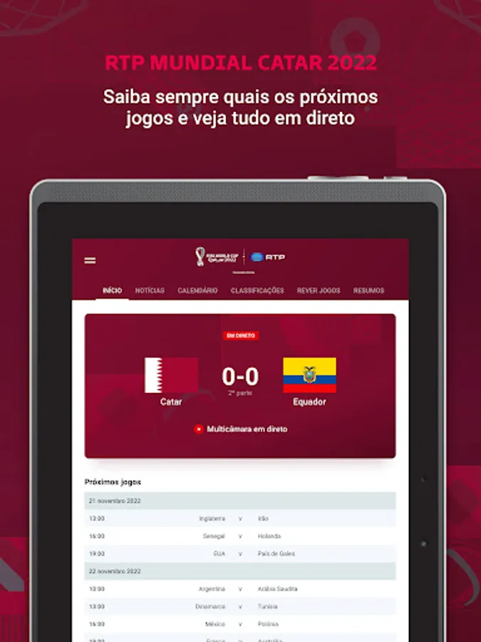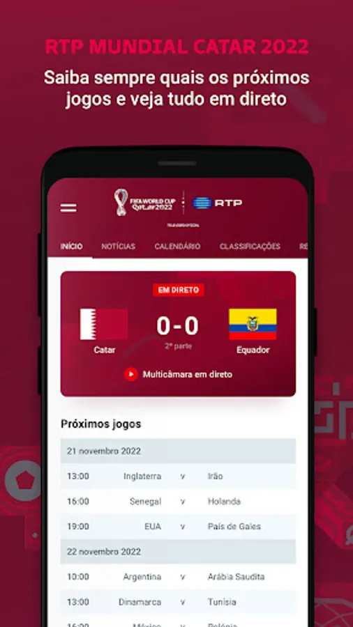 Follow FIFA World Cup 2022 games with the official RTP application.
