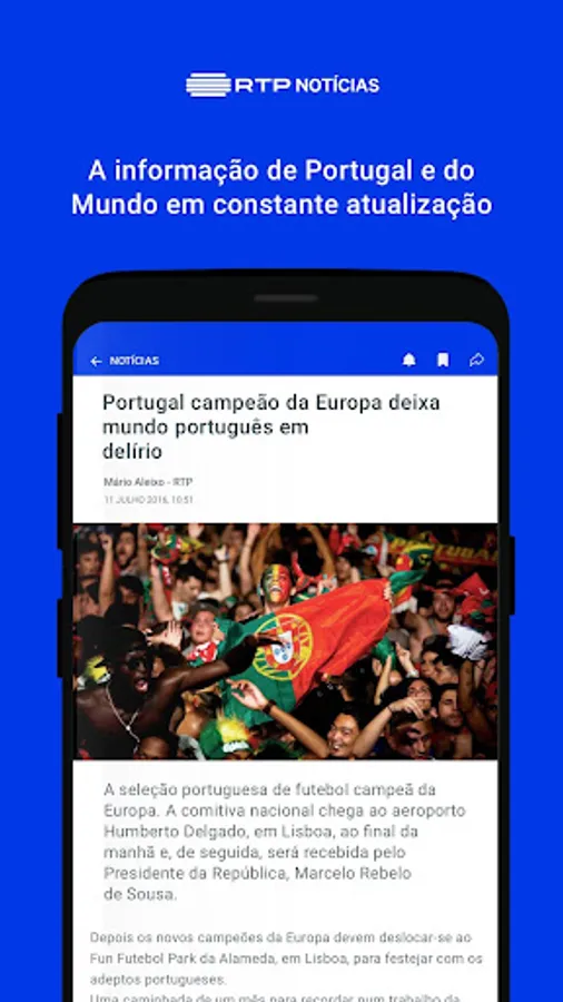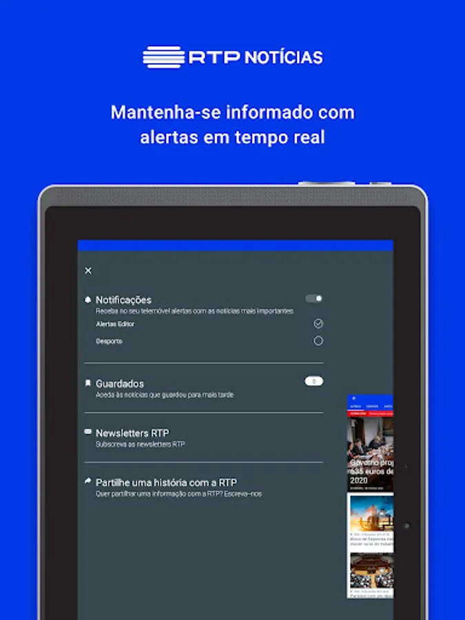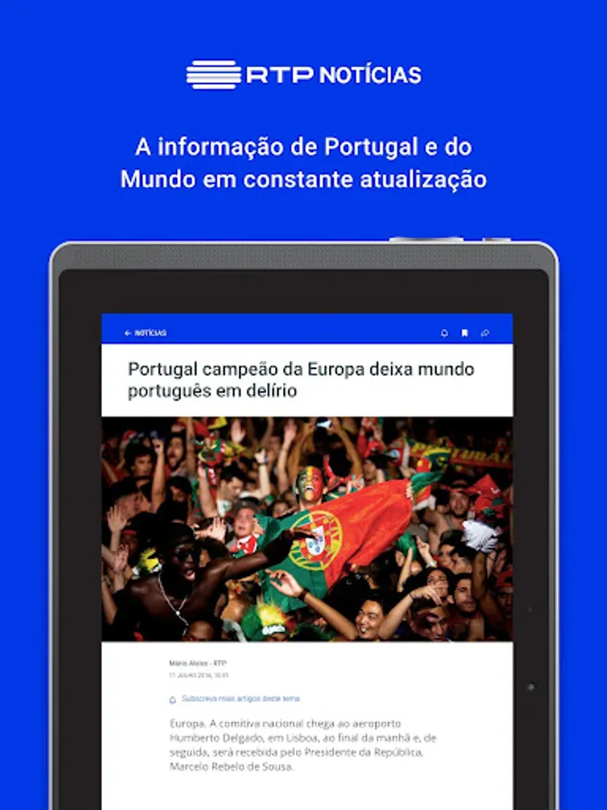 RTP in your hand, anytime, anywhere. The most important news selected for RTP editors in text, video or audio from your iPhone or iPad. You can also save the information that interests you to see or hear later.