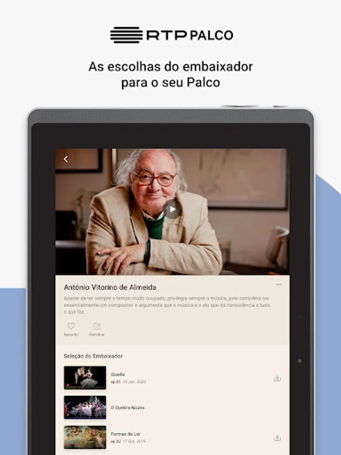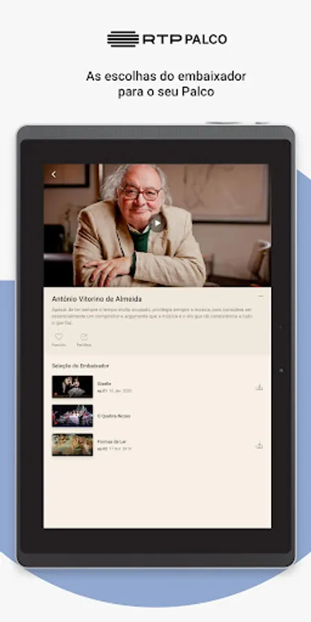 If you want to make a suggestion or report a problem with the application, contact us through the address teatro@rtp.pt