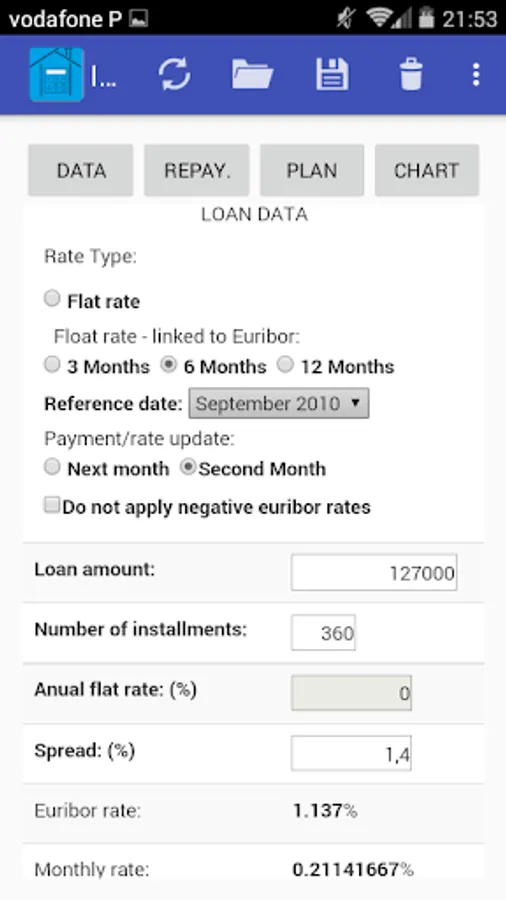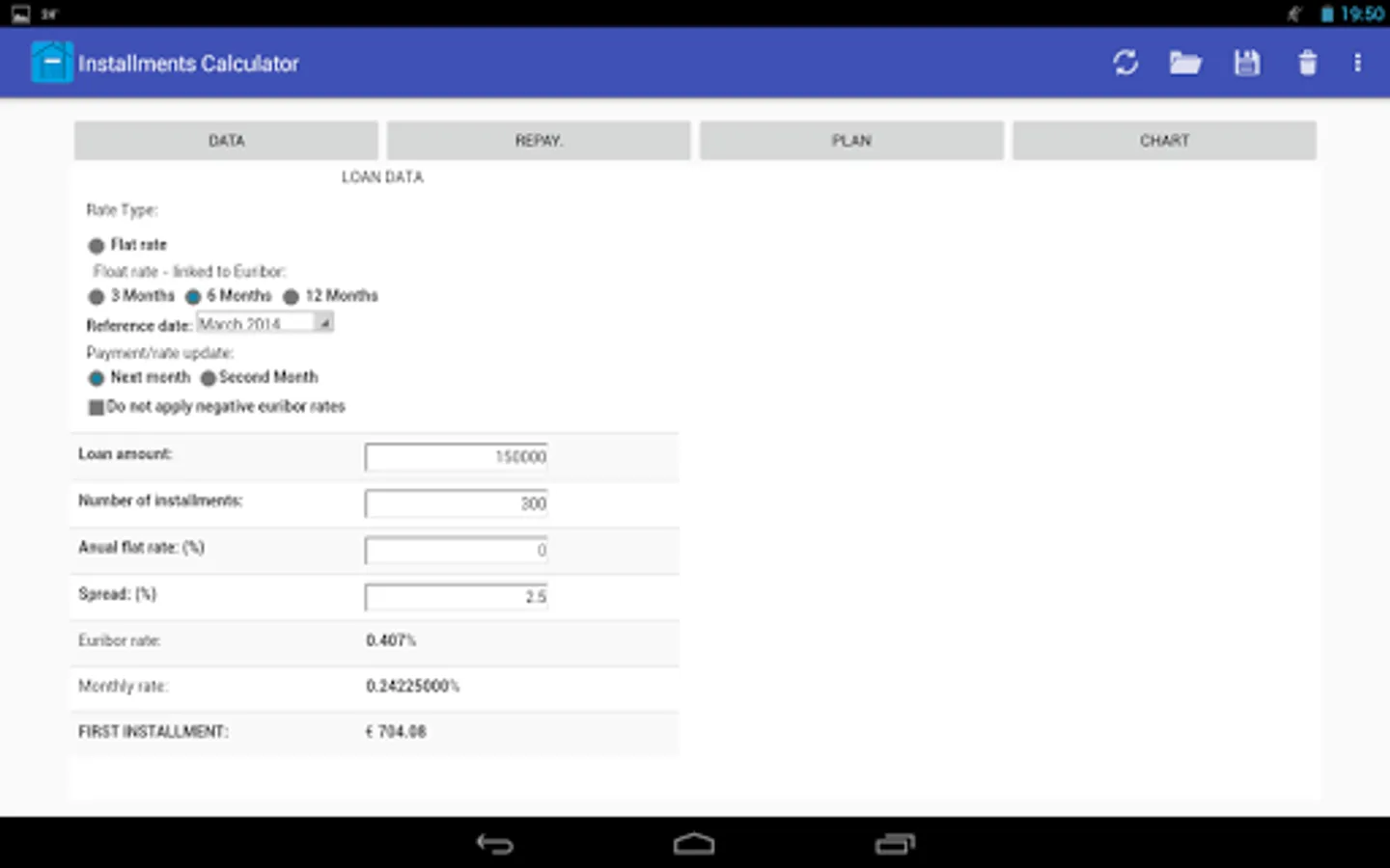 Calculates the payment of a loan indexed to Euribor at 3, 6 or 12 months, or a flat rate.