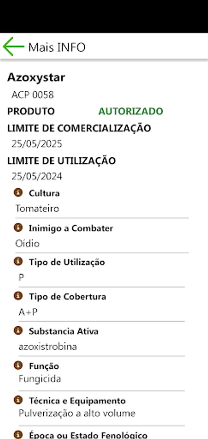 - technical sheet of phytosanitary products according to SIFITO, synchronized by week.