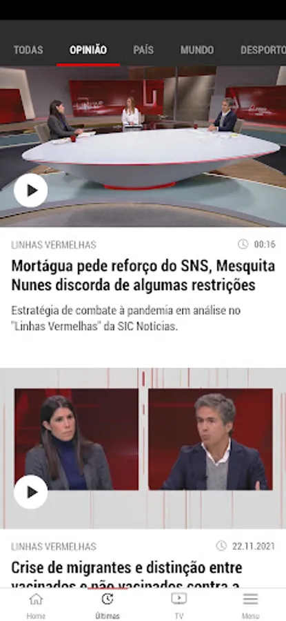 Follow the latest news, the opinion of SIC commentators and the latest videos from the Country, World, Economy, Sports, Health and Wellbeing, Culture and SIC Notícias programs.