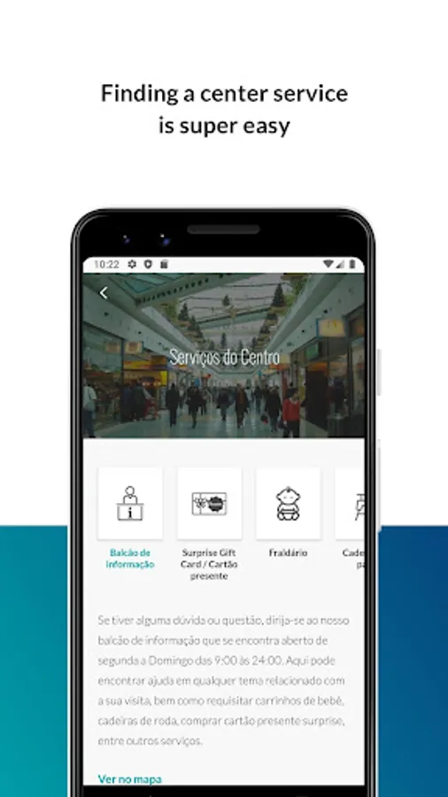 Our service “O seu carro está aqui” (“Your car is here”) is also available on all our parking floors so you never forget where you parked your car.