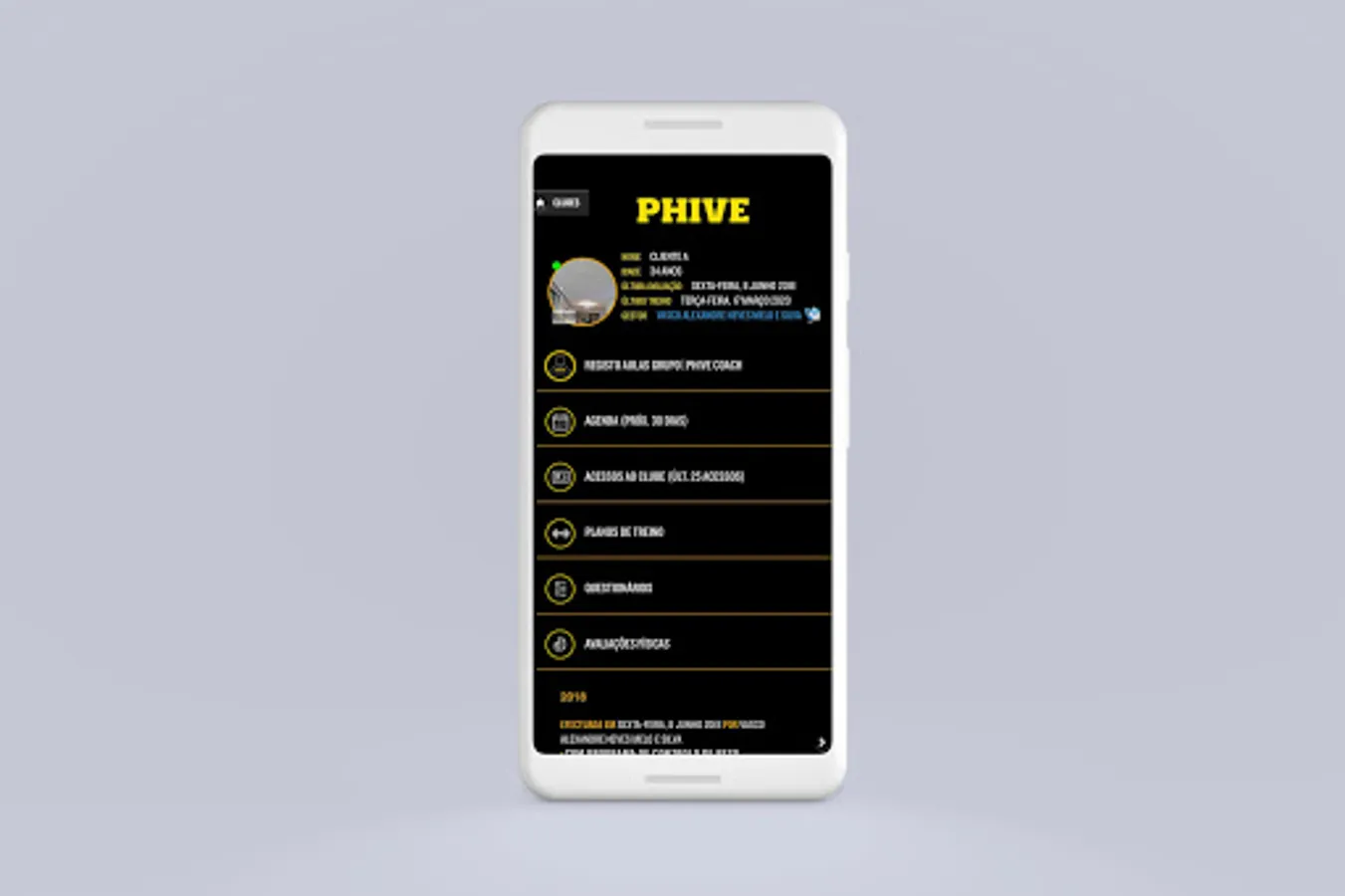 Members can access their training plans, physical assessments and all scheduled appointments, as well as register classes and digital monitoring training.