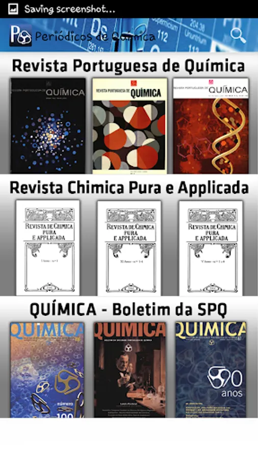 Destes, apenas o último ainda continua ser publicado. O primeiro (RCPA), cuja publicação se iniciou em 1905, ainda antes da fundação da SPQ (1911), deu lugar ao segundo (RPQ) em 1958. Esta revista foi extinta em 1997 por a Sociedade Portuguesa de Química ter nessa altura integrado um consórcio internacional de sociedades de Química e de uma editora que publica revistas internacionais da especialidade.