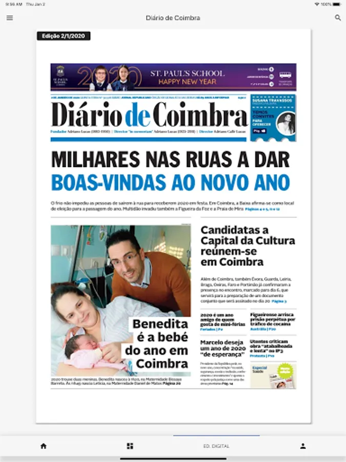 Edition of the Diário de Coimbra, the regional daily newspaper most read in Portugal. Founded 83 years ago, publishes daily news from the district of Coimbra and the Borders region.