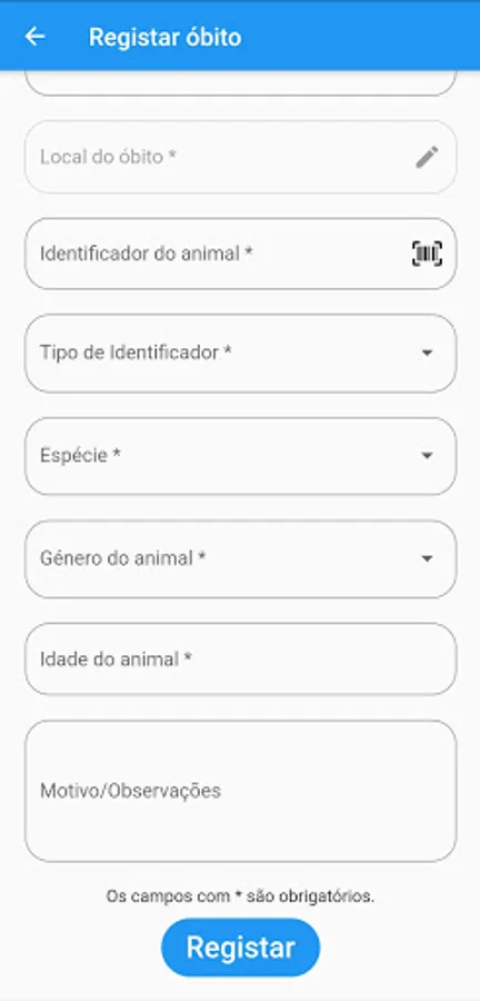 Application that allows registered users / beneficiaries to register the death of animals within the scope of SIRCA, through a simple and practical interface: