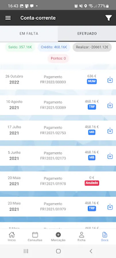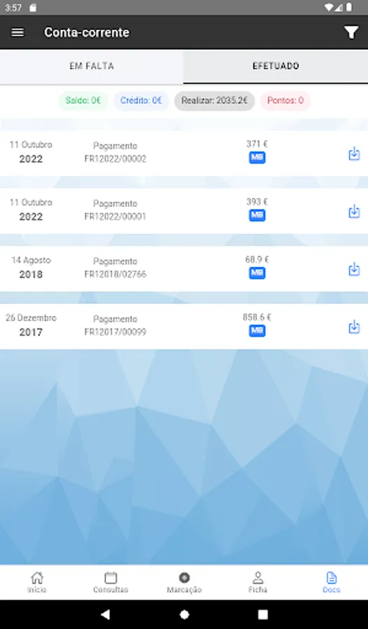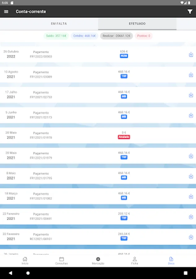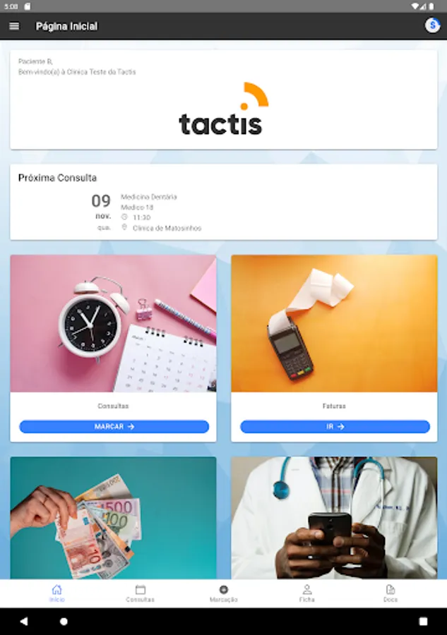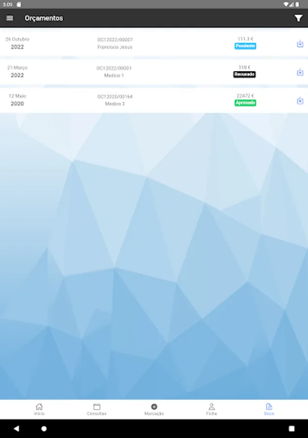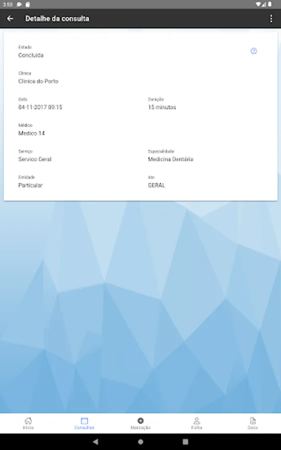 Application aimed at medical clinic patients that allows viewing the history of consultations, treatments, budgets, current account, prescriptions. Possibility of downloading budgets, invoices and different documents. It allows scheduling appointments, viewing information from the clinics associated with it, and viewing and modifying your biographical file.