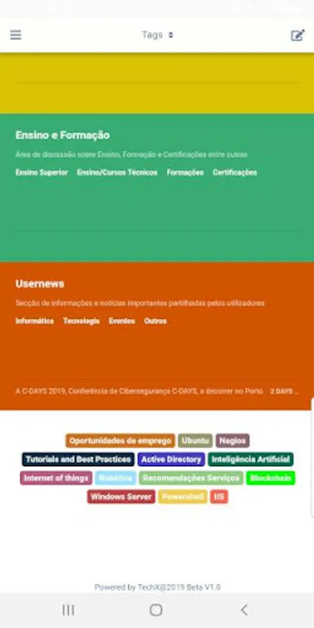 The Techx App is intended to be an extension to the TECHX platform, which seeks to unite professionals and become the largest independent Portuguese language community by addressing discussions, questions and solving technical, computer and new technology issues.