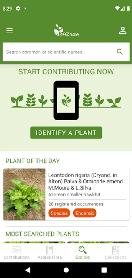 With this application you can search for plant species existing in our archipelago, using text search or identification through an image or photograph taken in a natural habitat.