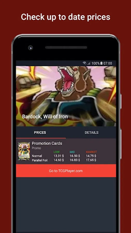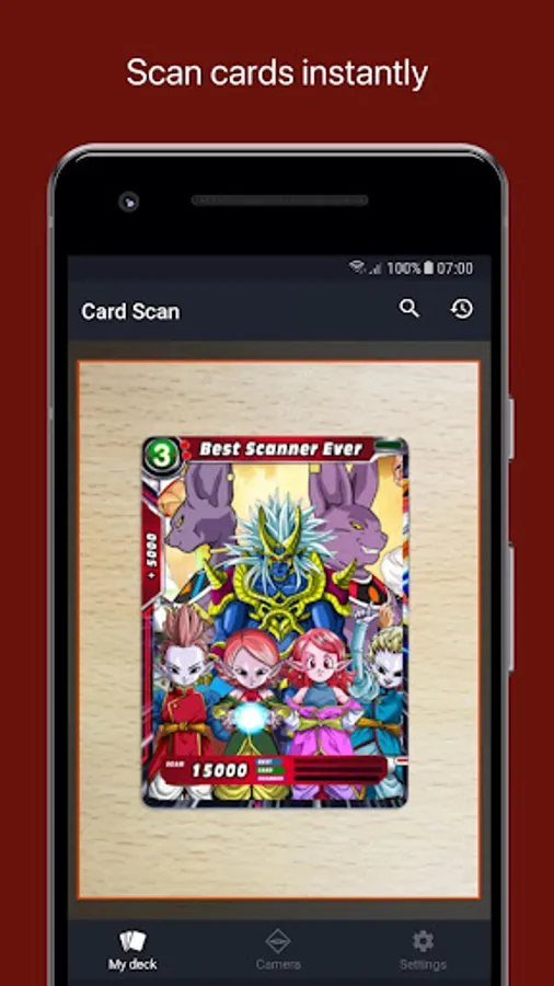 Your companion app for DBSuper. Instantly scan cards, check up-to-date prices from TCGPlayer.com or Cardmarket.com and create your favorite deck!