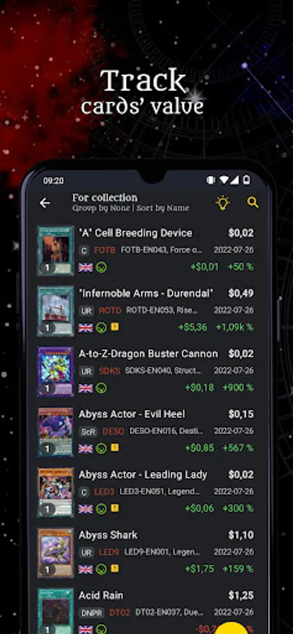 - See what cards went up or down in value