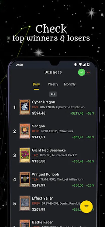 - See the top card winners and losers within your collection