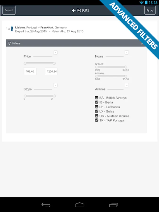 Supports advanced search parameters and filters to input traveller preferences and speed up booking.