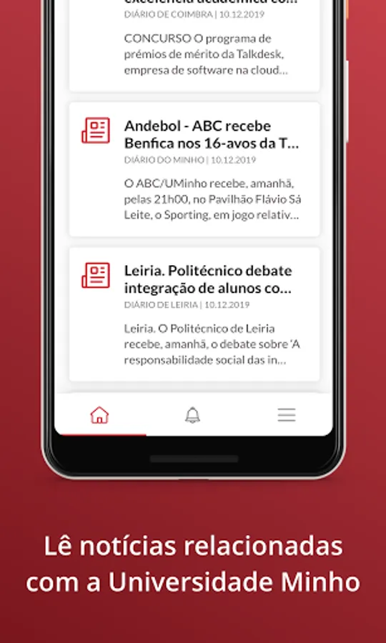 A aplicação para dispositivos móveis (App) da UMinho destina-se a ser utilizada de forma transversal por toda a comunidade académica, disponibilizando, em permanência, informação relevante sobre a UMinho, bem como o acesso a mecanismos de interação relativos a vários domínios de atividade: