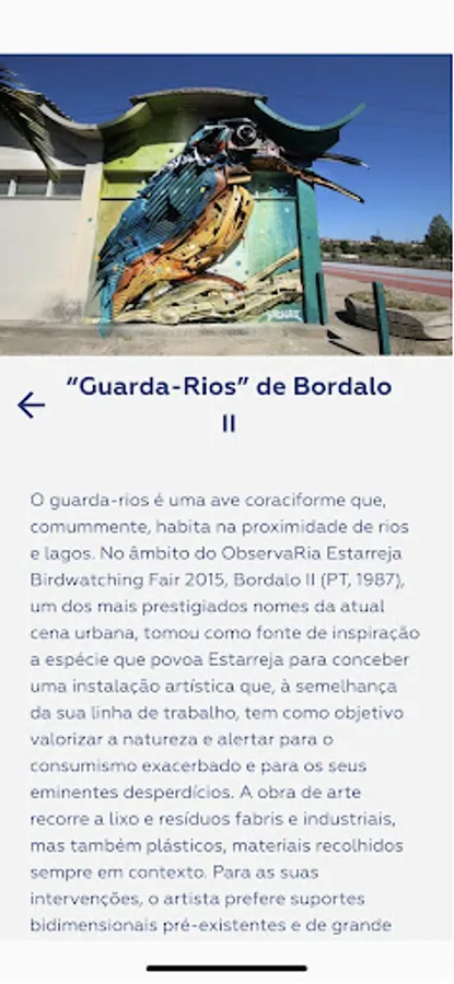 The application “SENTIR ESTARREJA” will use the user's location to suggest two thematic itineraries in the first phase and make known hundreds of points of interest (e.g. heritage, environment and landscape, art in public space, equipment and services) services in the city and the municipality, information and the possibility to evaluate each point of interest, share it on social networks and comment.