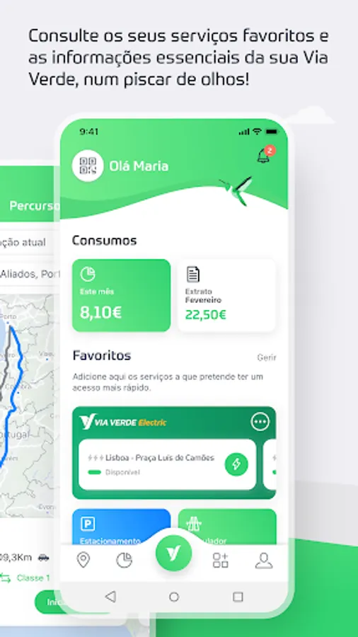 Did you know that, using the app, you can pay for your parking with Via Verde? And calculate, in advance, the tolls for your routes? That you can charge your electric vehicle, or even fill up and pay, without having to go to the counter?