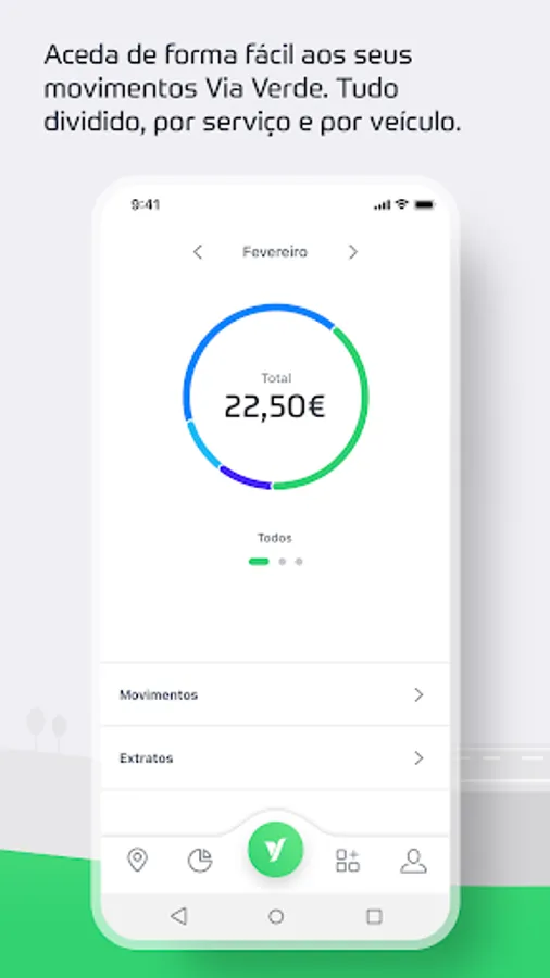 Easily access your Via Verde movements! In a divided and organized way, by service and by vehicle.