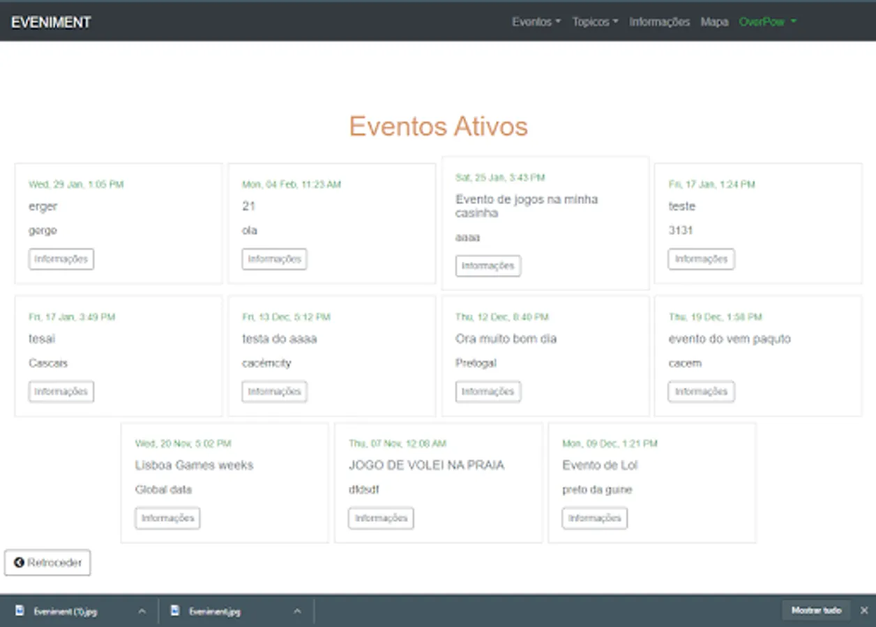 This application allows its users to create and participate in events, and also create topics about something they want to share with the community
