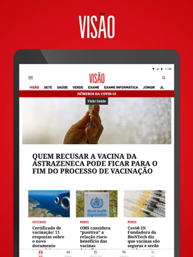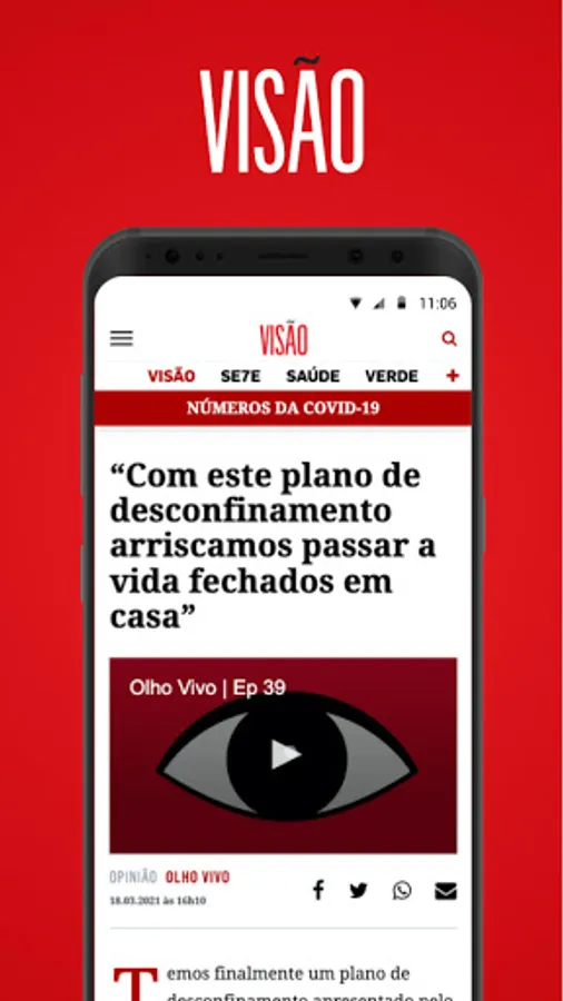 The new VISÃO application gives you direct access to the excellent journalism content produced by the most widely read newsmagazine in Portugal. Here, you have privileged access to the most important information of today, the opinion that counts and all the multimedia articles of VISÃO. Including access to podcasts that bring you the conversations that make the difference and to all VISÃO newsletters that bring you the best information.