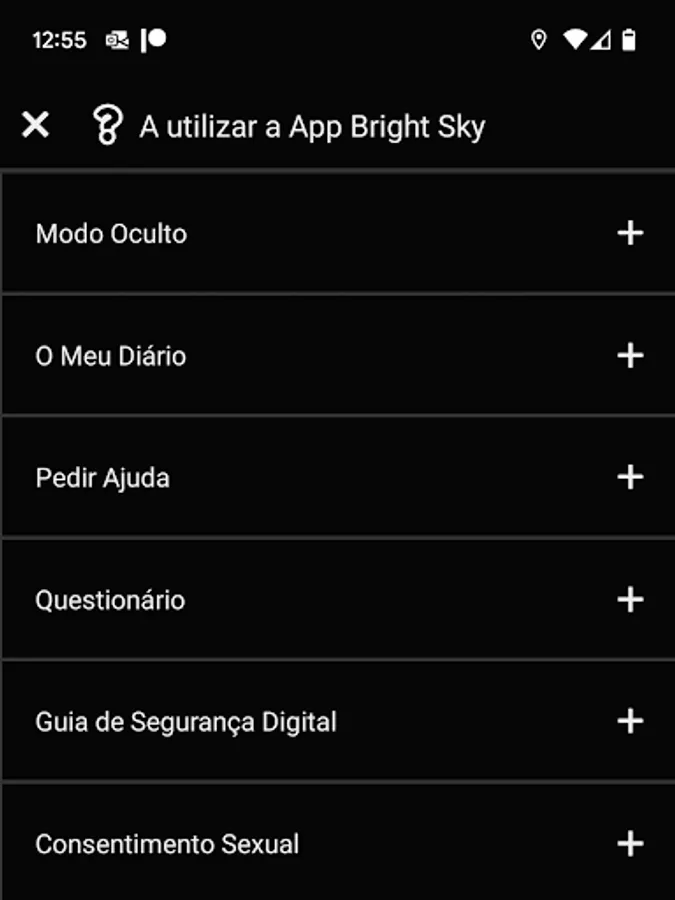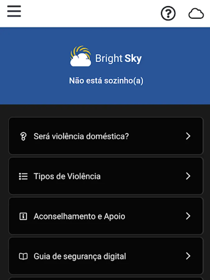 The Bright Sky PT App provides a list of specialized support services and provides questionnaires that allow the user to assess the security (risks) of a relationship. This App features content that helps to break myths about domestic and sexual abuse and to share a set of tips to improve digital security.